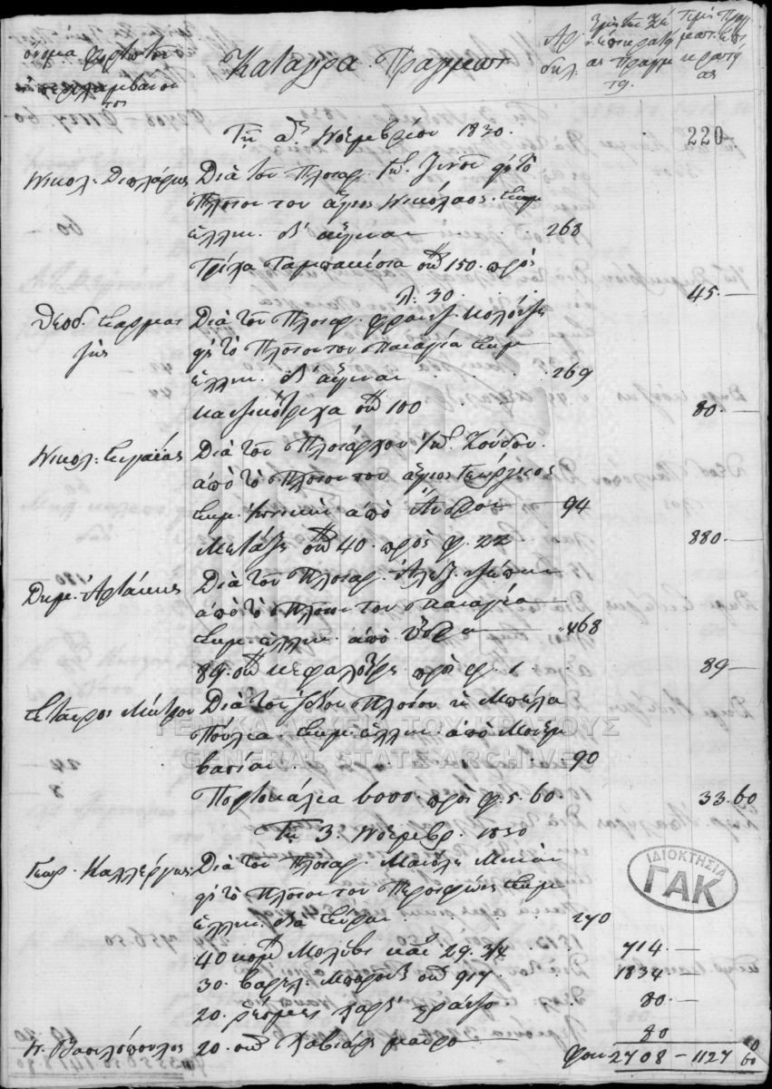 Περιέχει επιστολές, λογαριασμούς, ισολογισμούς, λογιστικές καταστάσεις, αποδείξεις (εισπράξεων και πληρωμών), διαταγές, κατάστιχα, γραμμά...