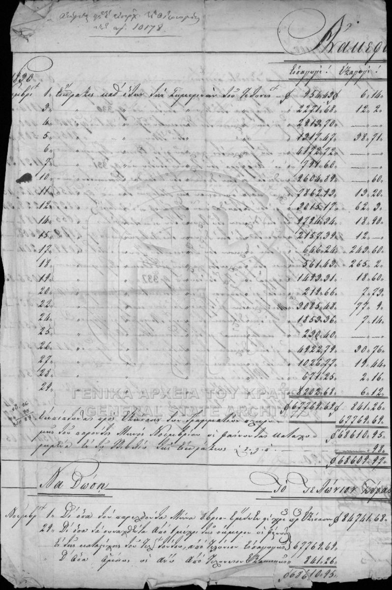 [Fonds] GRGSA-CSA_PAK002.00 Archive of the Financial Committee - Archive of the Financial Committee [1828 - 1833] Περιέχει επιστολές, λογαριασμούς, ισολογισμούς, λογιστικές καταστάσεις, αποδείξεις (εισπράξεων και πληρωμών), διαταγές, κατάστιχα, γραμμά... |