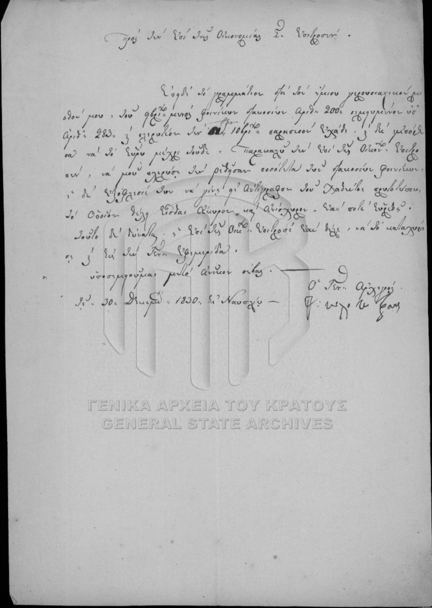 [Fichier] GRGSA-CSA_PAK002.00.F000163 Fichier #163 - Επιτροπή Οικονομίας [1830] Επιστολές και υπηρεσιακά έγγραφα. |