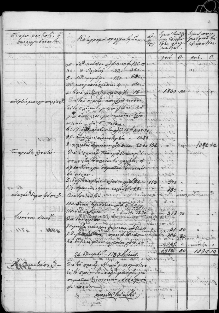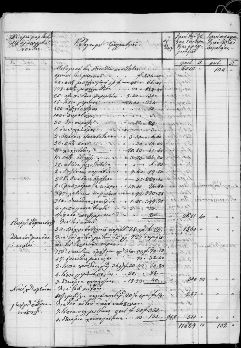 Περιέχει επιστολές, λογαριασμούς, ισολογισμούς, λογιστικές καταστάσεις, αποδείξεις (εισπράξεων και πληρωμών), διαταγές, κατάστιχα, γραμμά...
