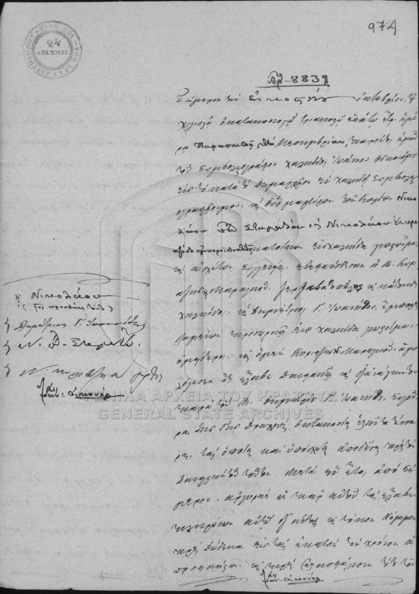 [Pièce] GRGSA-EUB_NOT001.09.01.F000023.IT008839 Pièce #8839 [20 Οκτωβρίου 1839] Συμβολαιογραφική πράξη. |