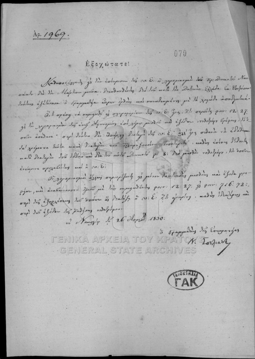 Αρχείο Επιτροπής Οικονομίας (περιόδου Κυβερνήτη Ι. Καποδίστρια)  [1828 - 1833]