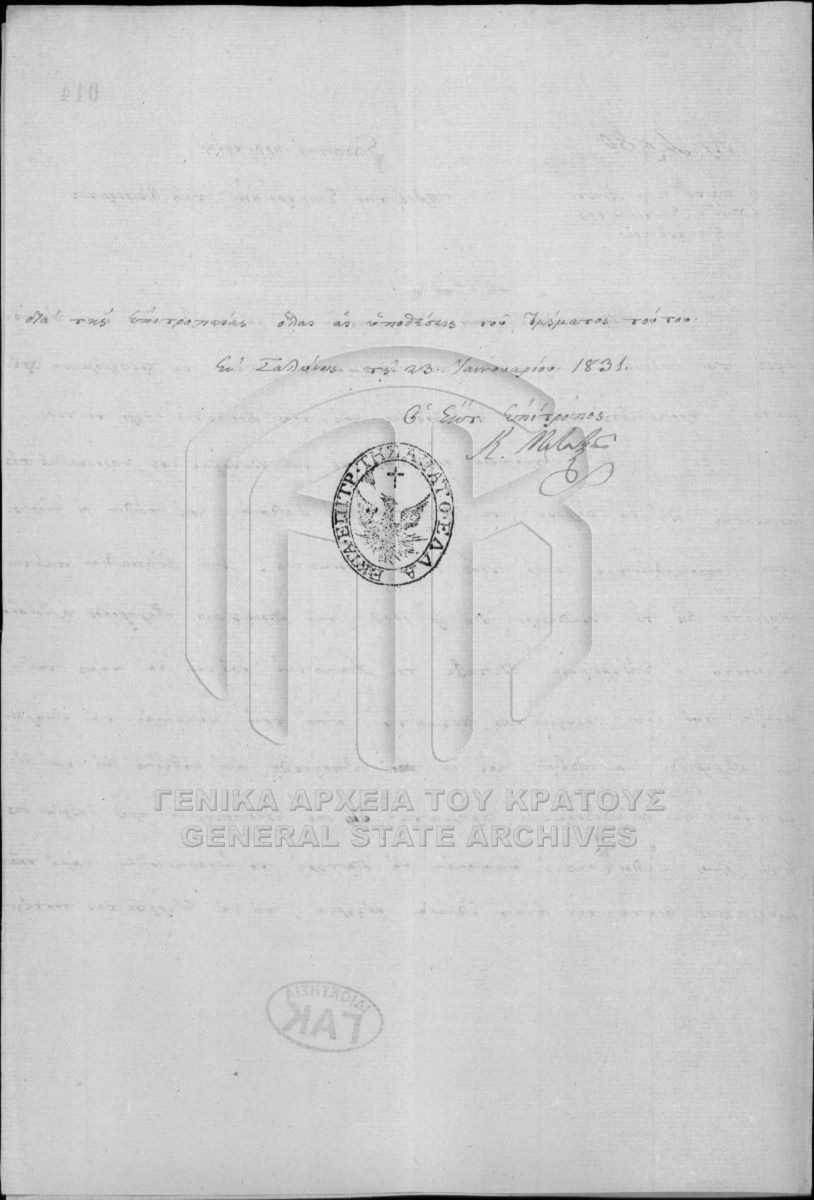 Αρχείο Επιτροπής Οικονομίας (περιόδου Κυβερνήτη Ι. Καποδίστρια)  [1828 - 1833]
