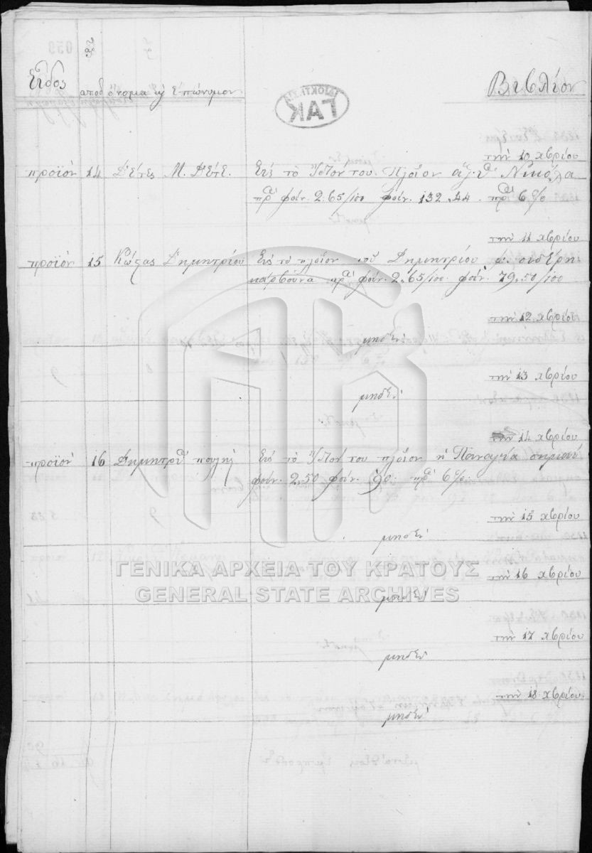 Περιέχει επιστολές, λογαριασμούς, ισολογισμούς, λογιστικές καταστάσεις, αποδείξεις (εισπράξεων και πληρωμών), διαταγές, κατάστιχα, γραμμά...