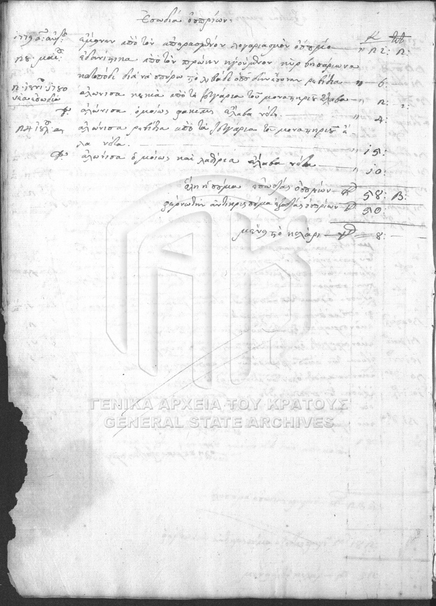 Έγγραφα παραχώρησης αγαθών στην Αρχιεπισκοπή Λευκάδας. Έξοδα Αρχιεπισκοπής.