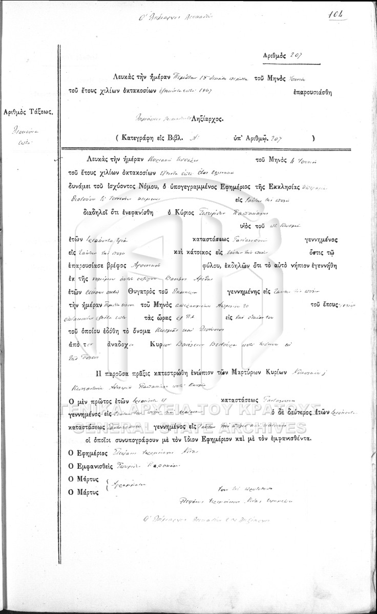 Contenu: Βιβλίον Γεννητηρίων Πράξεων. Βιβλίο γεννητηρίων πράξεων.