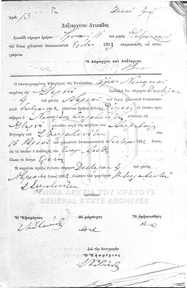 [Fichier] GRGSA-LEF_REG003.01.F000024 Fichier #024 [1901 - 1905] Contenu: Βιβλίο γεννητηρίων πράξεων. Βιβλίο βαπτίσεων. Βιβλίον Βαπτίσεων. Βιβλίο γεννήσεων. |