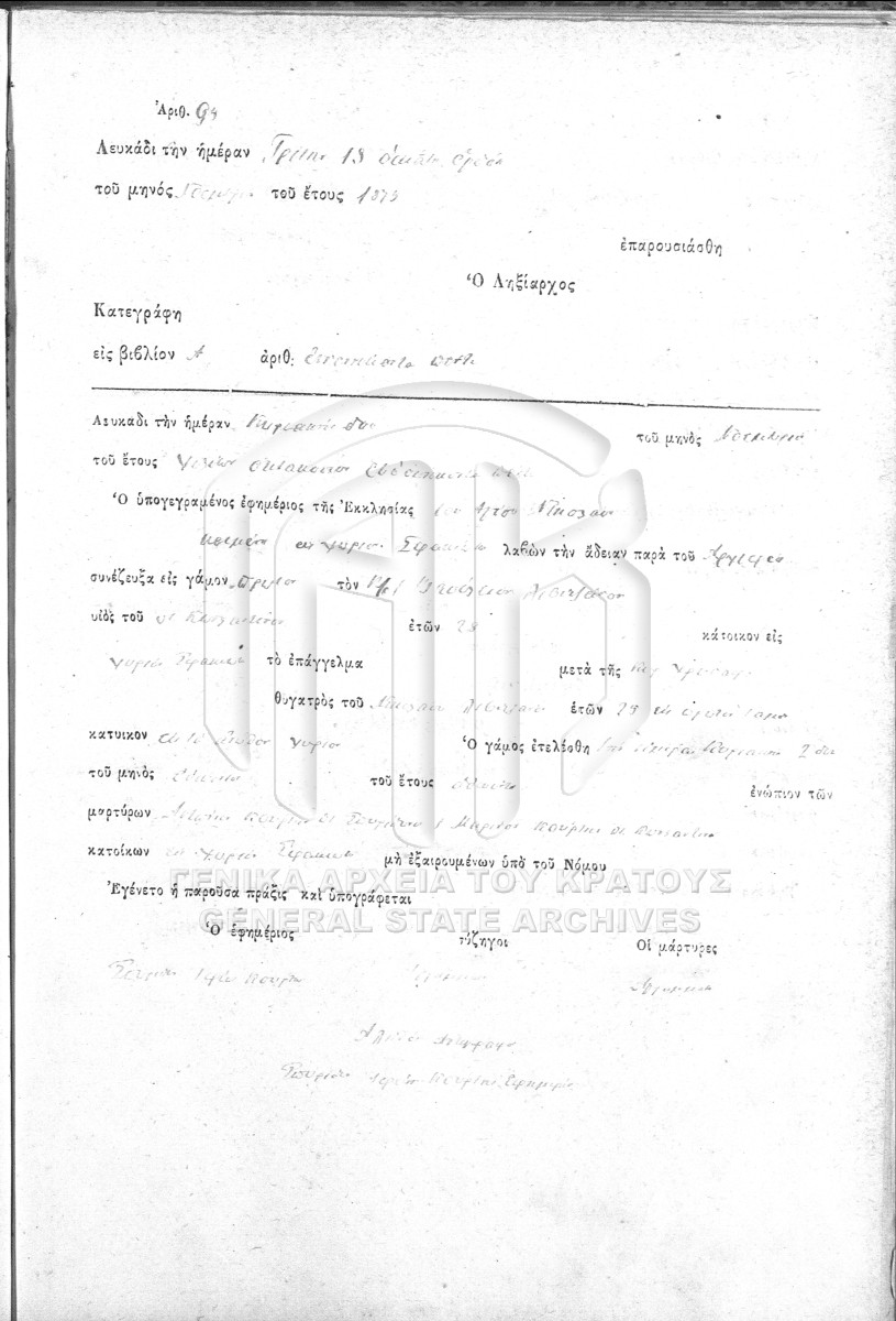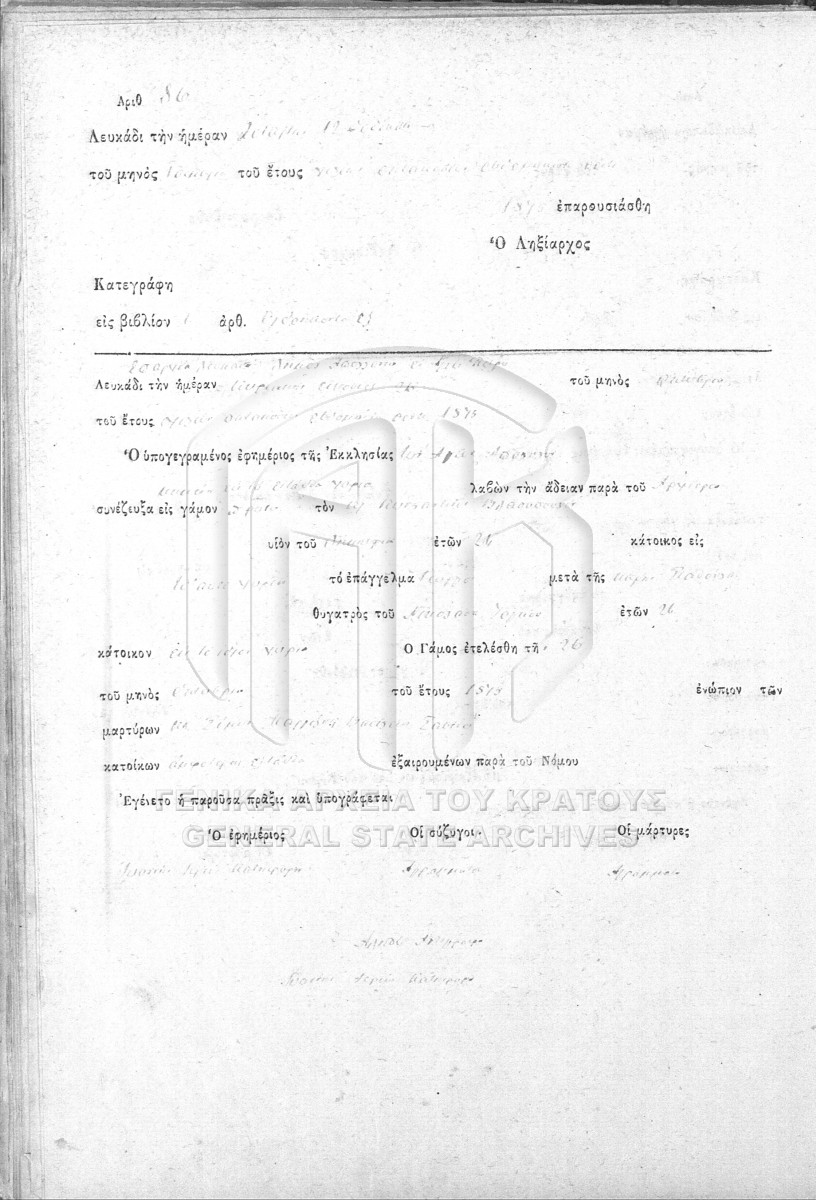 Περιεχόμενα: Βιβλίον Γαμητηρίων Πράξεων. Βιβλίον Γάμων. Γαμικαί Πράξεις. Βιβλίον Γάμων