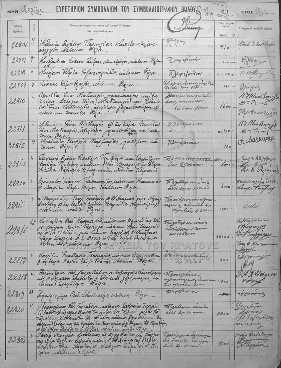 Ευρετήριο συμβολαιογραφικών πράξεων 20840 - 24661.