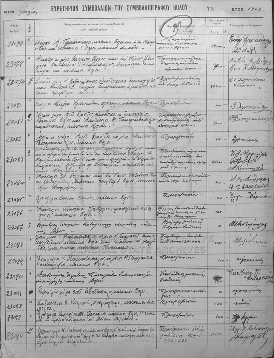 Περιεχόμενα: Ευρετήριο Ζ - Η - Θ - Ι. Ευρετήριο Χ - Ψ - Ω. Ευρετήριο συμβολαιογραφικών πράξεων 1- 2155. Ευρετήριο συμβολαιογραφικών π...
