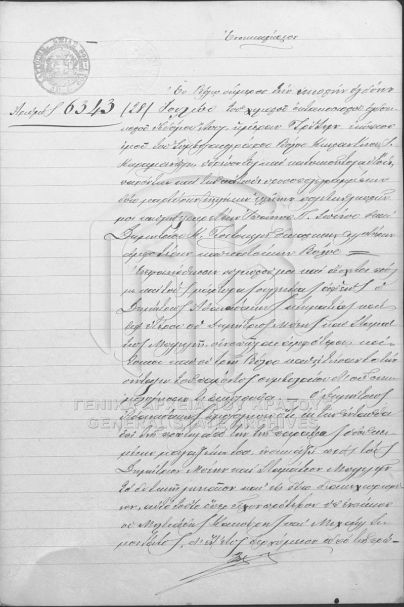 [Τεκμήριο] GRGSA-MAG_NOT002.01.F000014.IT006343 Τεκμήριο #6343 [28 Ιουλίου 1887] Συμβολαιογραφική πράξη. Ενοικιαστήριο. |