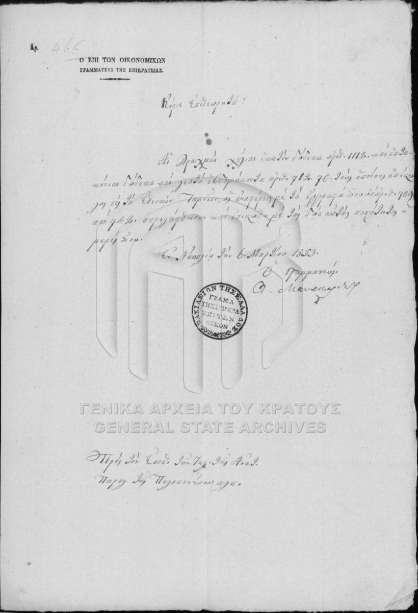 File #313 - I. KAPODISTRIAS GOVERNING PERIOD ARCHIVE  [1833]