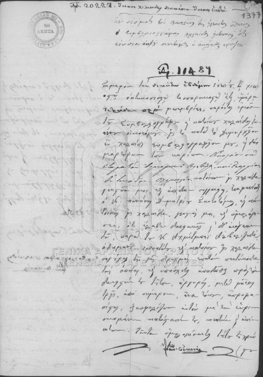 [Pièce] GRGSA-EUB_NOT001.09.01.F000026.IT010489 Pièce #10489 [17 Ιουλίου 1840] Συμβολαιογραφική πράξη. |