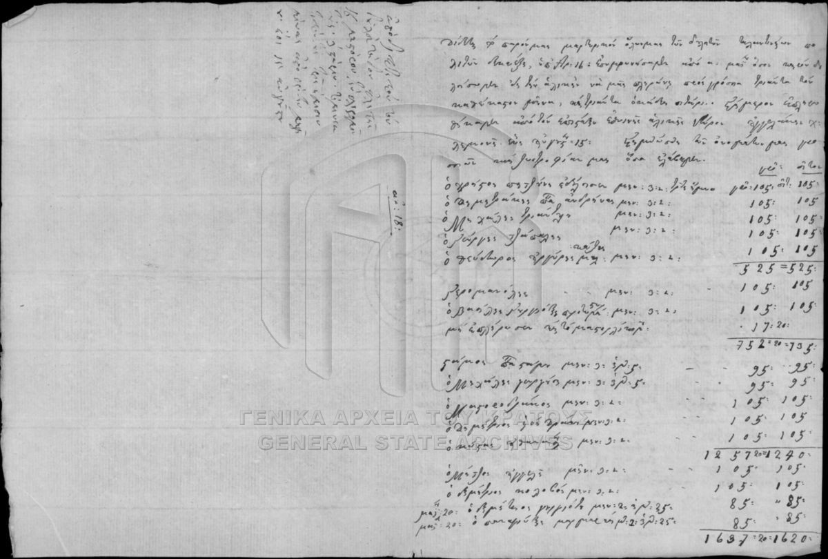 Περιέχει επιστολές, λογαριασμούς, ισολογισμούς, λογιστικές καταστάσεις, αποδείξεις (εισπράξεων και πληρωμών), διαταγές, κατάστιχα, γραμμά...