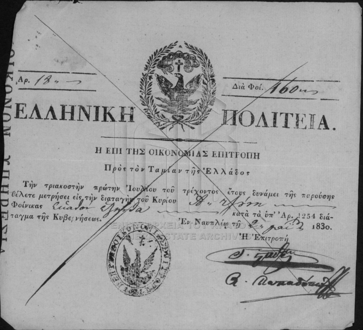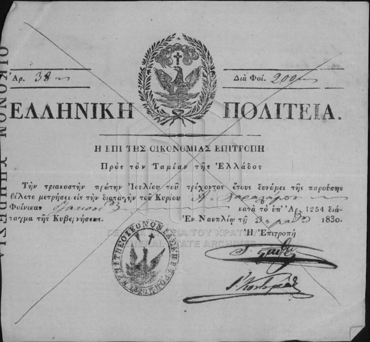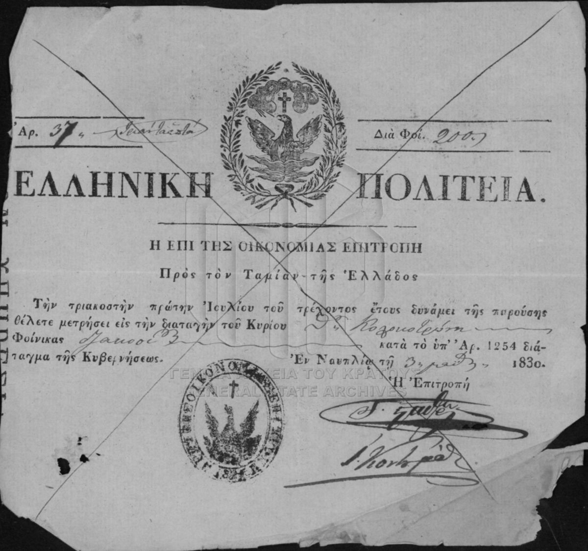 Αρχείο Επιτροπής Οικονομίας (περιόδου Κυβερνήτη Ι. Καποδίστρια)  [1828 - 1833]