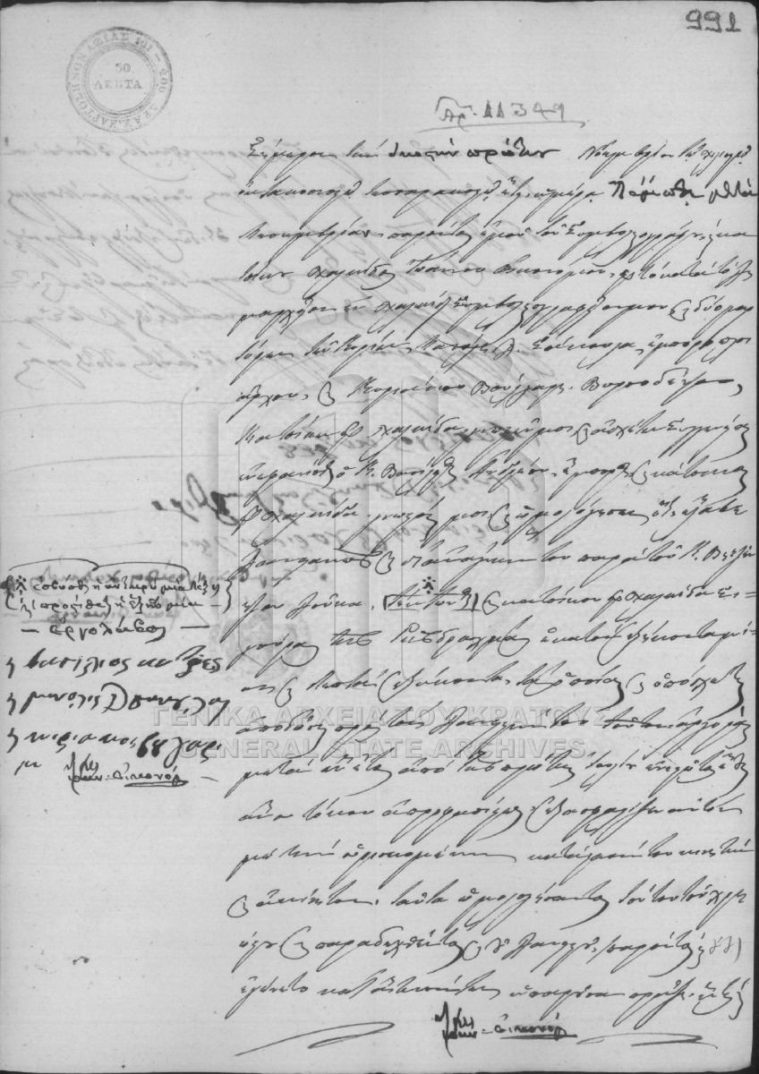 [Τεκμήριο] GRGSA-EUB_NOT001.09.01.F000028.IT011349 Τεκμήριο #11349 [21 Νοεμβρίου 1840] Συμβολαιογραφική πράξη. |