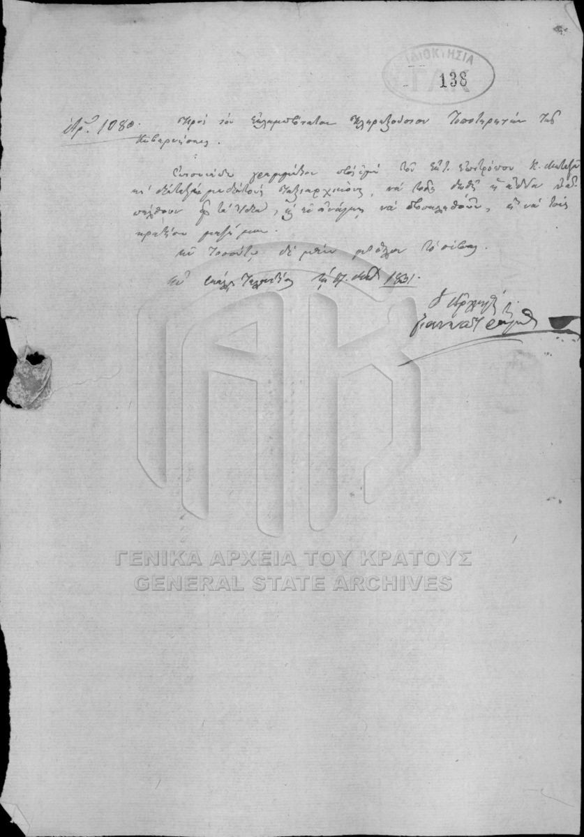 Αρχείο Πληρεξούσιου Τοποτηρητή (περιόδου Κυβερνήτη Ι. Καποδίστρια)  [1828 - 1831]