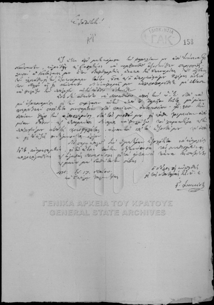 Περιέχει επιστολές, λογαριασμούς, ονομαστικούς καταλόγους, αναφορές, αποδείξεις, παραιτήσεις, αιτήσεις και διάφορα έγγραφα.