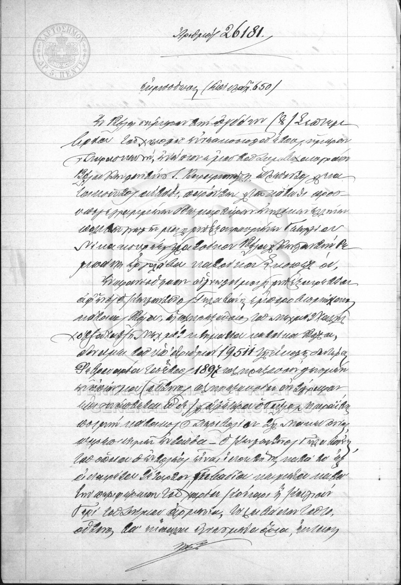[Item] GRGSA-MAG_NOT002.01.F000055.IT026181 Item #26181 - KARAMANOLIS NOTARIAL ARCHIVE [8 Σεπτεμβρίου 1900] Notarial deed. Lease. |