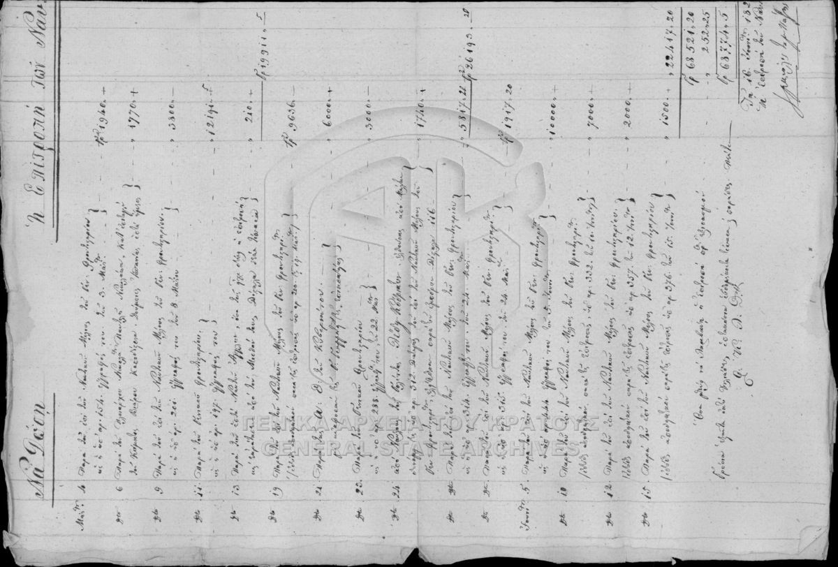 Περιέχει επιστολές, διάφορα έγγραφα, διατάγματα, λογαριασμούς, ονομαστικούς καταλόγους, αποδείξεις, ναυτολόγια και δηλοποιήσεις.