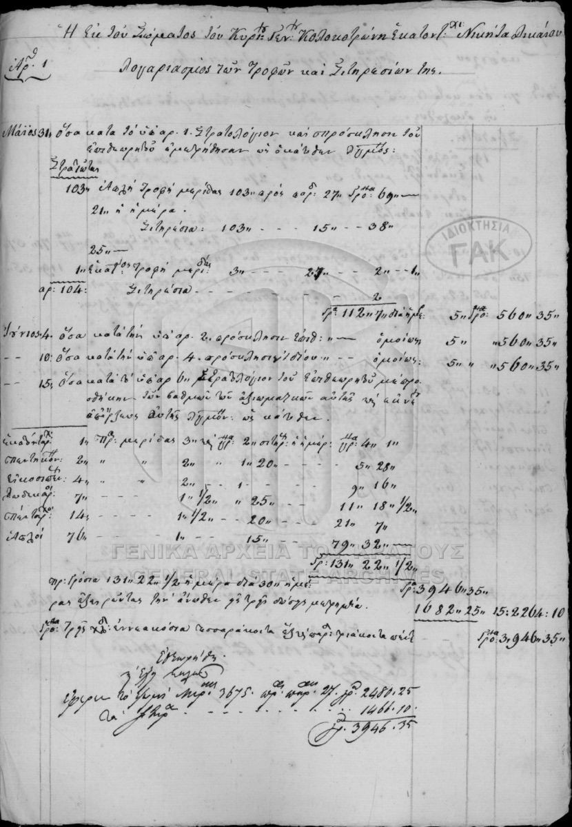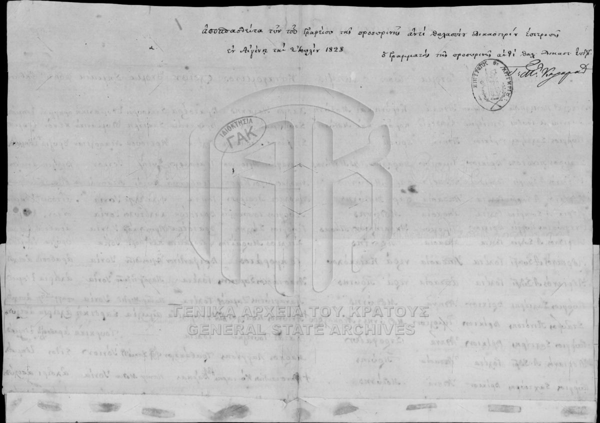 [Fonds] GRGSA-CSA_PAK005.00 Αρχείο Γενικού Φροντιστηρίου (περιόδου Κυβερνήτη Ι. Καποδίστρια) [1828 - 1829] Περιέχει επιστολές, διάφορα έγγραφα, διατάγματα, λογαριασμούς, ονομαστικούς καταλόγους, αποδείξεις, ναυτολόγια και δηλοποιήσεις. |