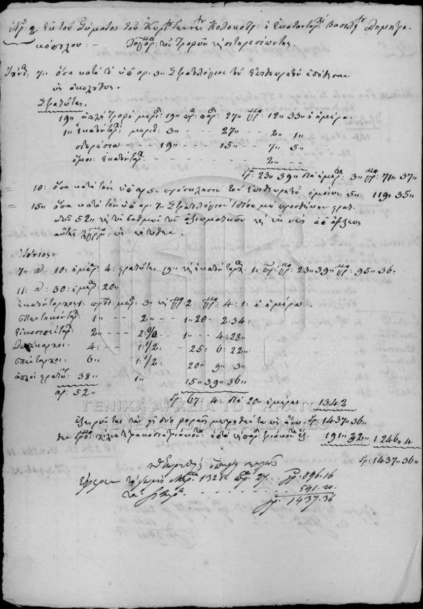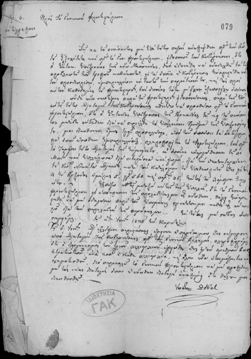 Περιέχει επιστολές, διάφορα έγγραφα, διατάγματα, λογαριασμούς, ονομαστικούς καταλόγους, αποδείξεις, ναυτολόγια και δηλοποιήσεις.