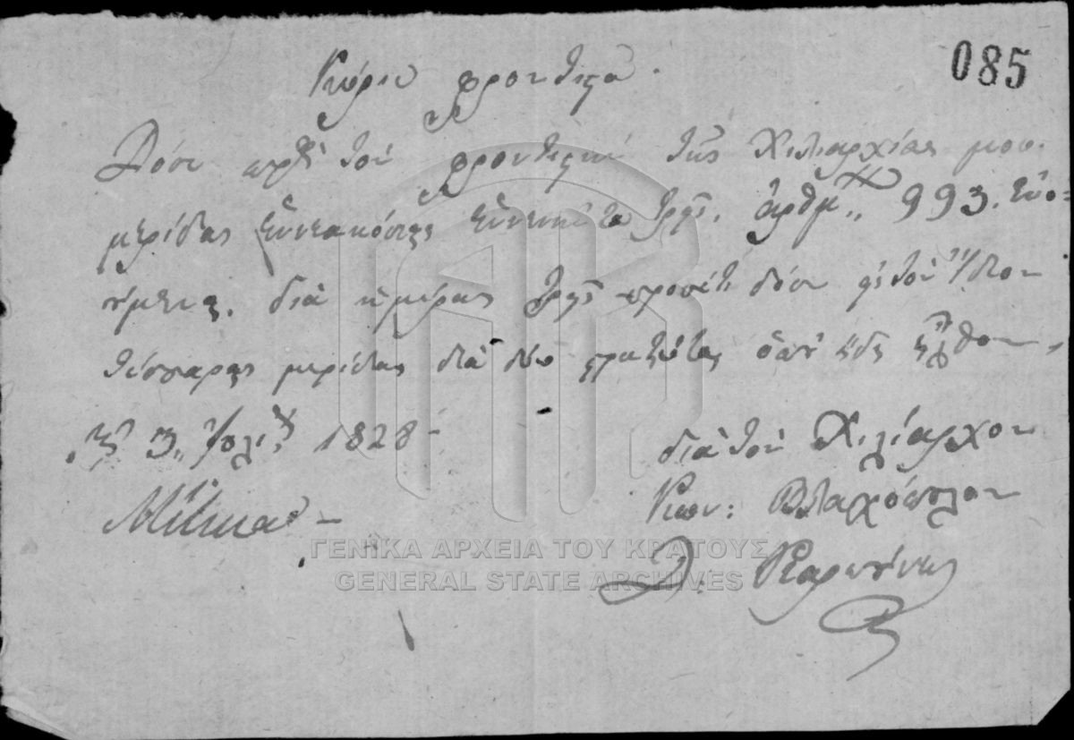 Αρχείο Γενικού Φροντιστηρίου (περιόδου Κυβερνήτη Ι. Καποδίστρια)  [1828 - 1829]
