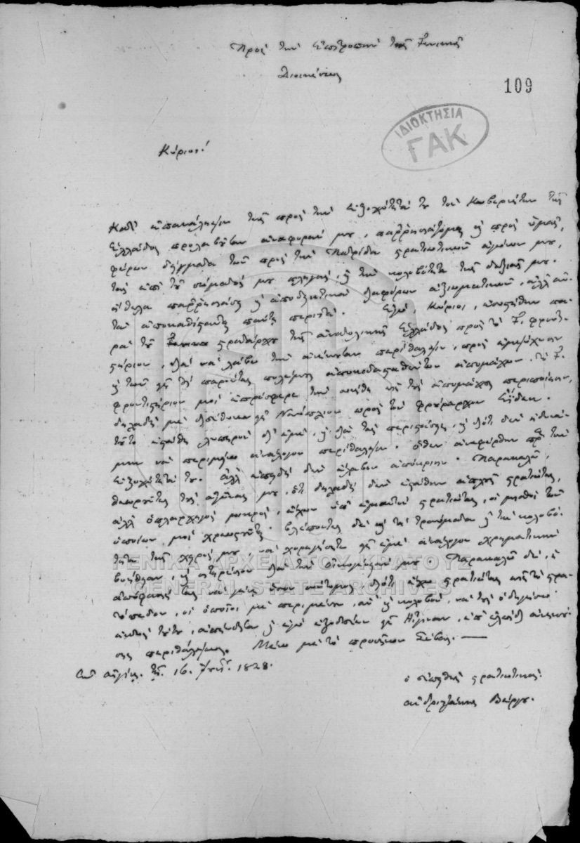 Αρχείο Γενικού Φροντιστηρίου (περιόδου Κυβερνήτη Ι. Καποδίστρια)  [1828 - 1829]