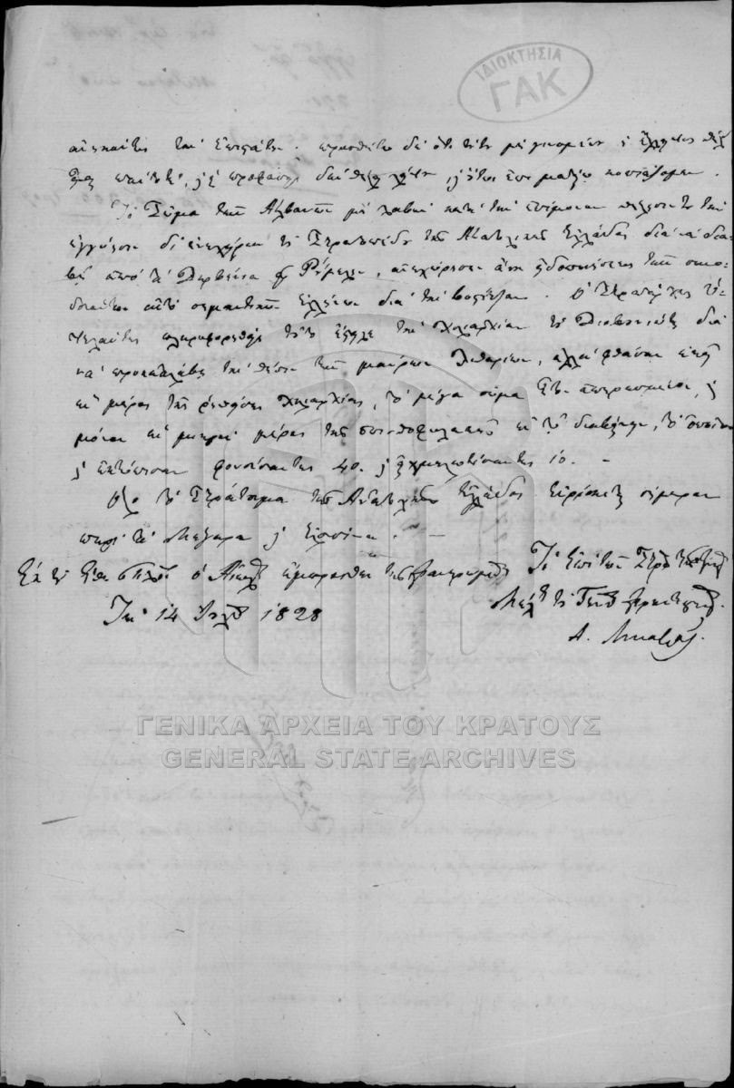 Αρχείο Γενικού Φροντιστηρίου (περιόδου Κυβερνήτη Ι. Καποδίστρια)  [1828 - 1829]