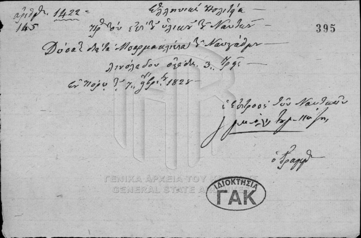 File #022 - I. KAPODISTRIAS GOVERNING PERIOD ARCHIVE  [1828]