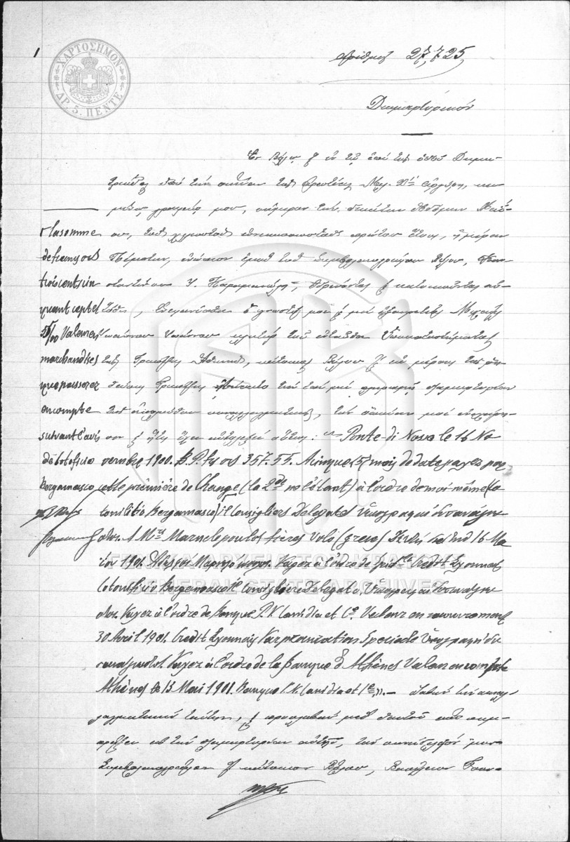[Τεκμήριο] GRGSA-MAG_NOT002.01.F000058.SF0001.IT027725 Τεκμήριο #27725 [17 Mαΐου 1901] Συμβολαιογραφική πράξη. Διαμαρτυρικό. |