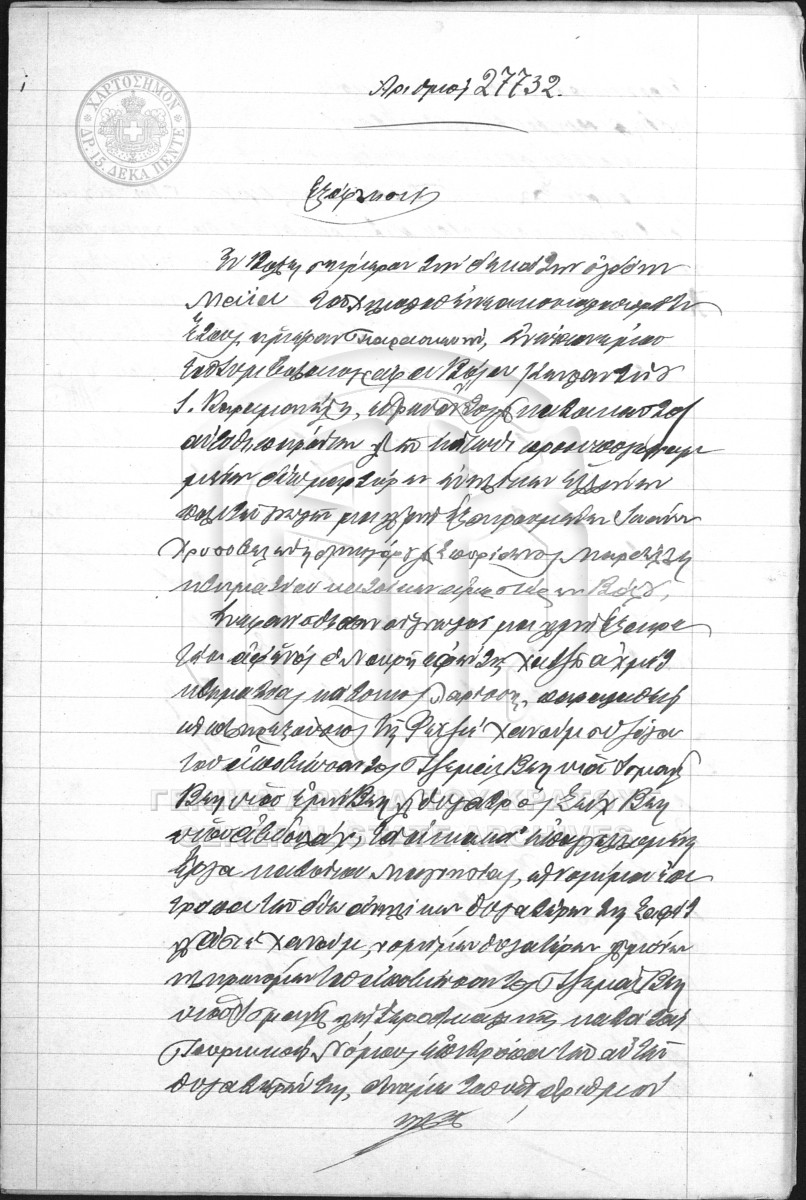 [Τεκμήριο] GRGSA-MAG_NOT002.01.F000058.SF0001.IT027732 Τεκμήριο #27732 [18 Μαΐου 1901] Συμβολαιογραφική πράξη. Εξόφληση. |