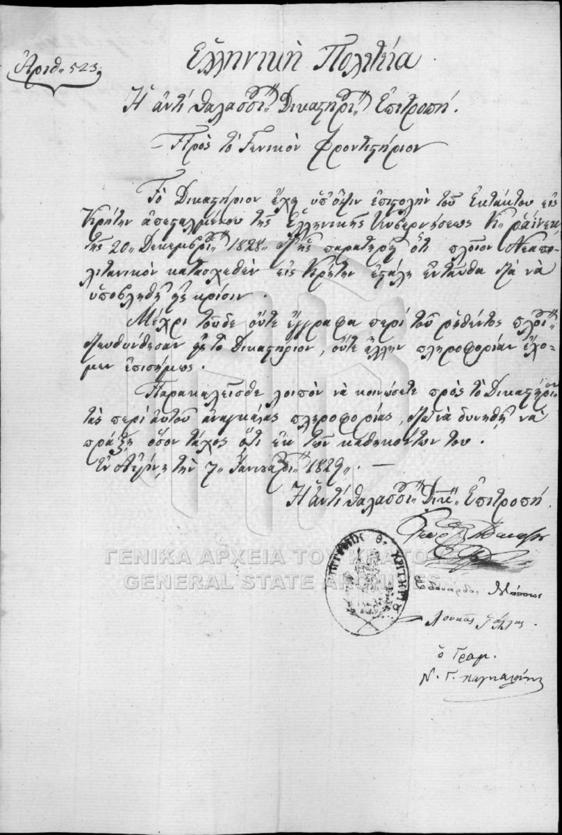 File #029 - I. KAPODISTRIAS GOVERNING PERIOD ARCHIVE  [1829]