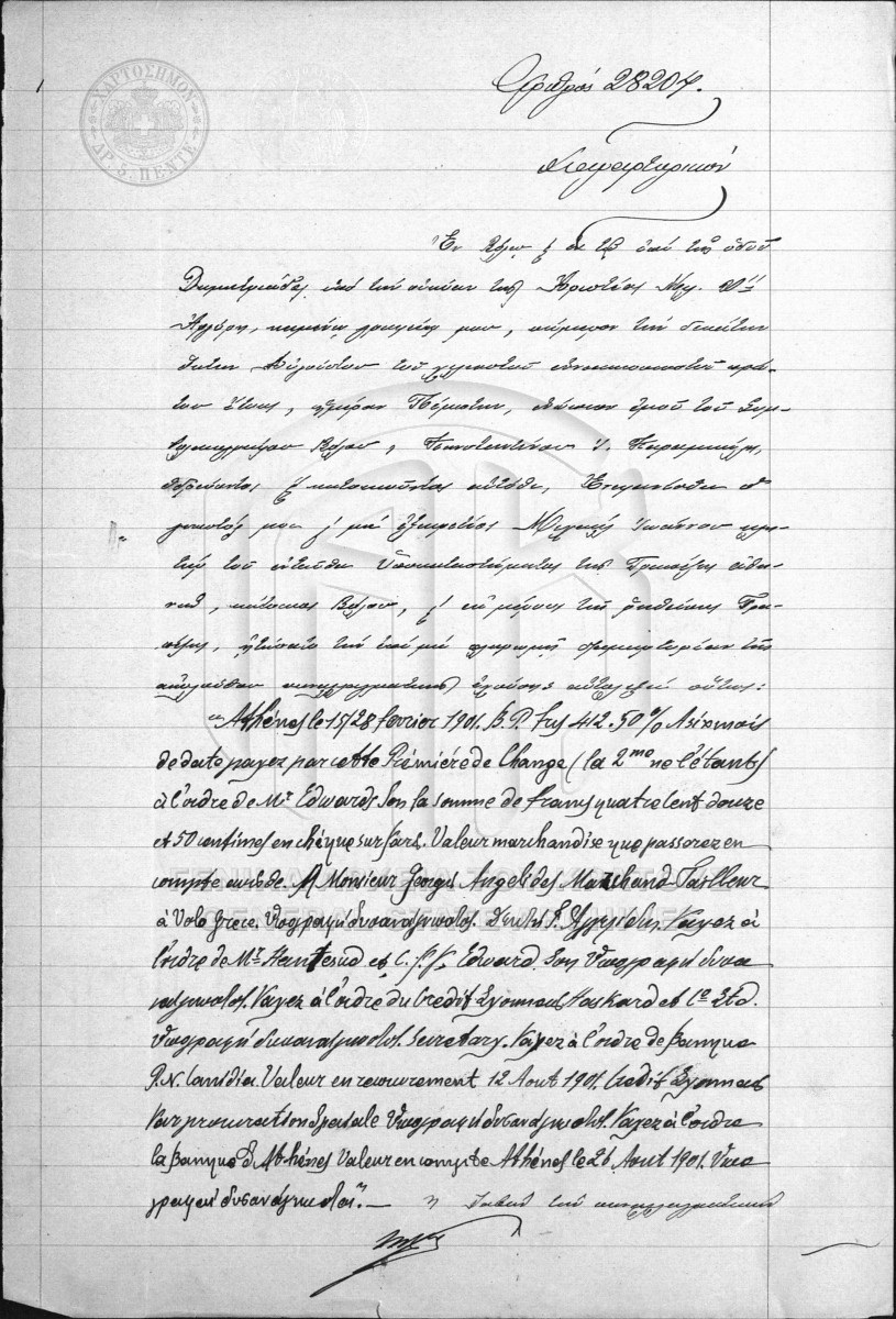 [Item] GRGSA-MAG_NOT002.01.F000058.SF0002.IT028204 Item #28204 - KARAMANOLIS NOTARIAL ARCHIVE [16 Αυγούστου 1901] Notarial deed. Notice of protest. |