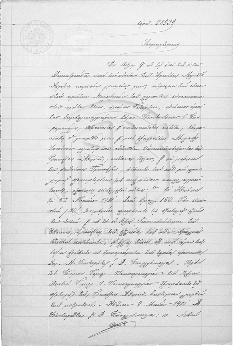[Pièce] GRGSA-MAG_NOT002.01.F000059.IT028929 Pièce #28929 [21 Νοεμβρίου 1901] Συμβολαιογραφική πράξη. Διαμαρτυρικό. |