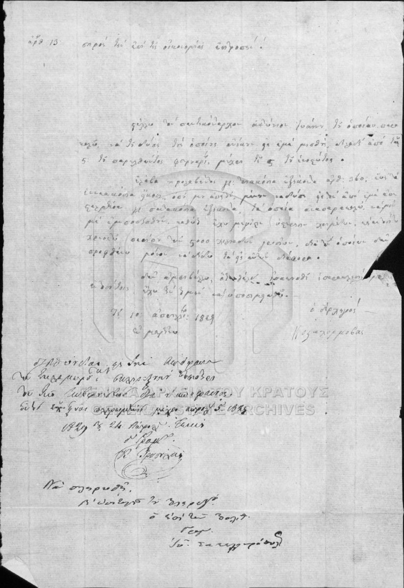 Αρχείο Γενικού Φροντιστηρίου (περιόδου Κυβερνήτη Ι. Καποδίστρια)  [1828 - 1829]