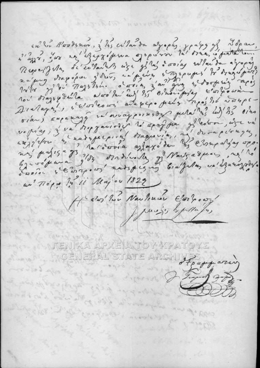 Περιέχει επιστολές, διάφορα έγγραφα, διατάγματα, λογαριασμούς, ονομαστικούς καταλόγους, αποδείξεις, ναυτολόγια και δηλοποιήσεις.