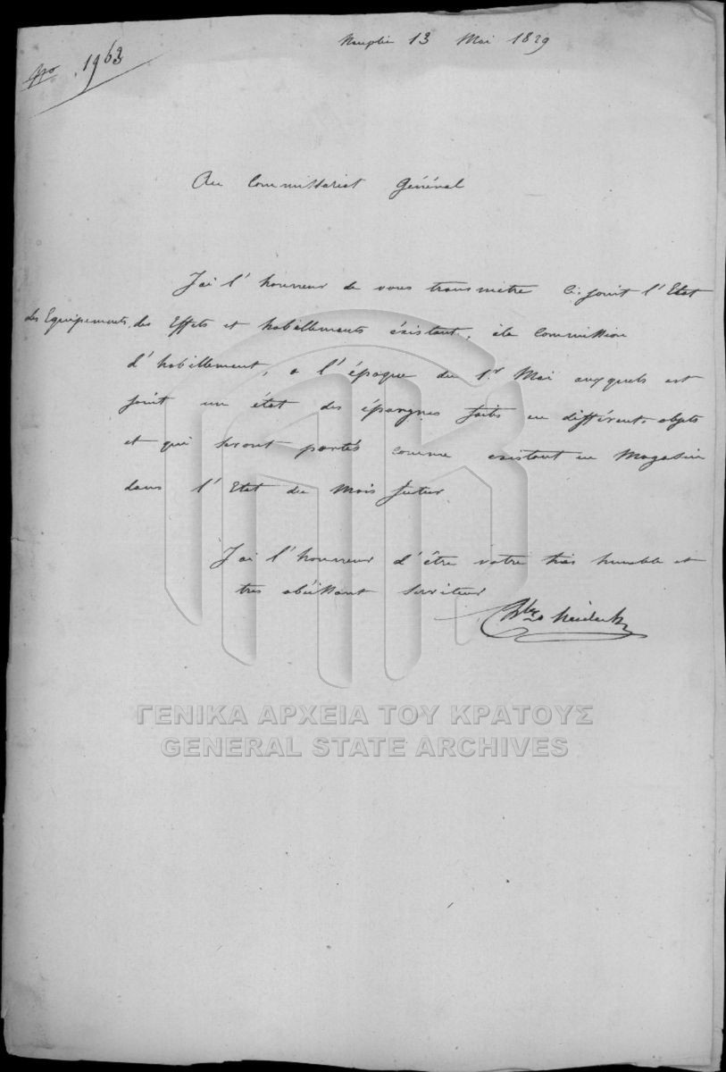 Περιέχει επιστολές, διάφορα έγγραφα, διατάγματα, λογαριασμούς, ονομαστικούς καταλόγους, αποδείξεις, ναυτολόγια και δηλοποιήσεις.