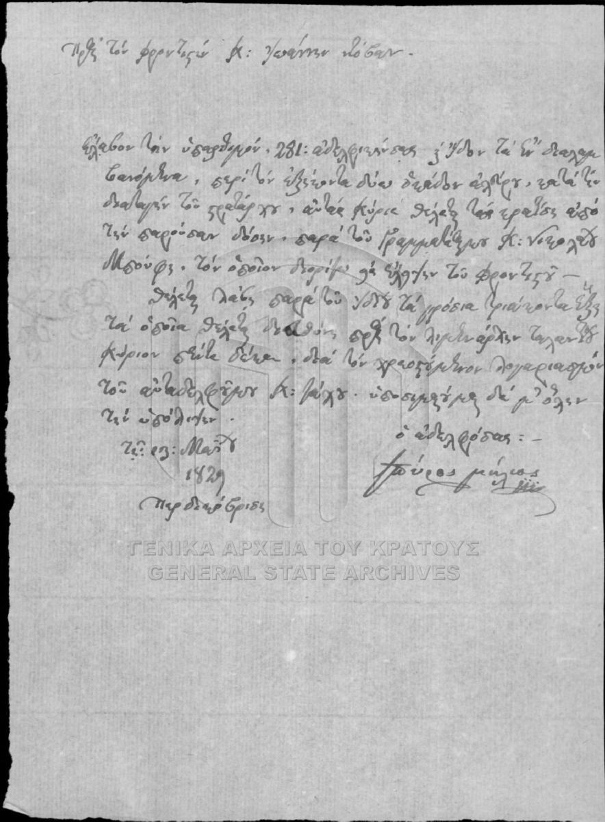 Αρχείο Γενικού Φροντιστηρίου (περιόδου Κυβερνήτη Ι. Καποδίστρια)  [1828 - 1829]