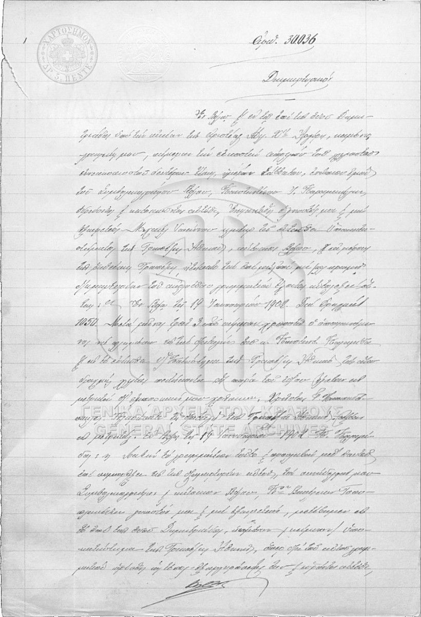 [Item] GRGSA-MAG_NOT002.01.F000061.IT030036 Item #30036 - KARAMANOLIS NOTARIAL ARCHIVE [20 Απριλίου 1902] Notarial deed. Notice of protest. |