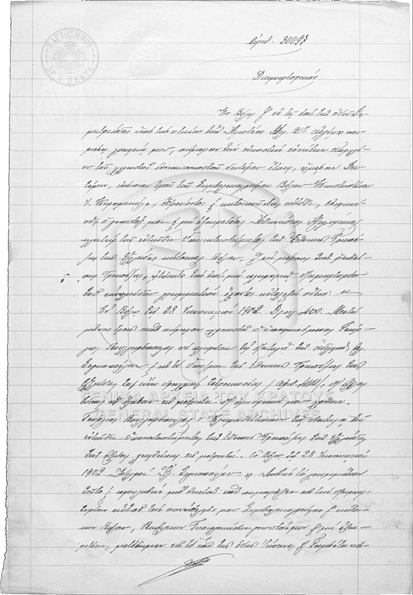 [Τεκμήριο] GRGSA-MAG_NOT002.01.F000061.IT030097 Τεκμήριο #30097 [29 Απριλίου 1902] Συμβολαιογραφική πράξη. Διαμαρτυρικό. |