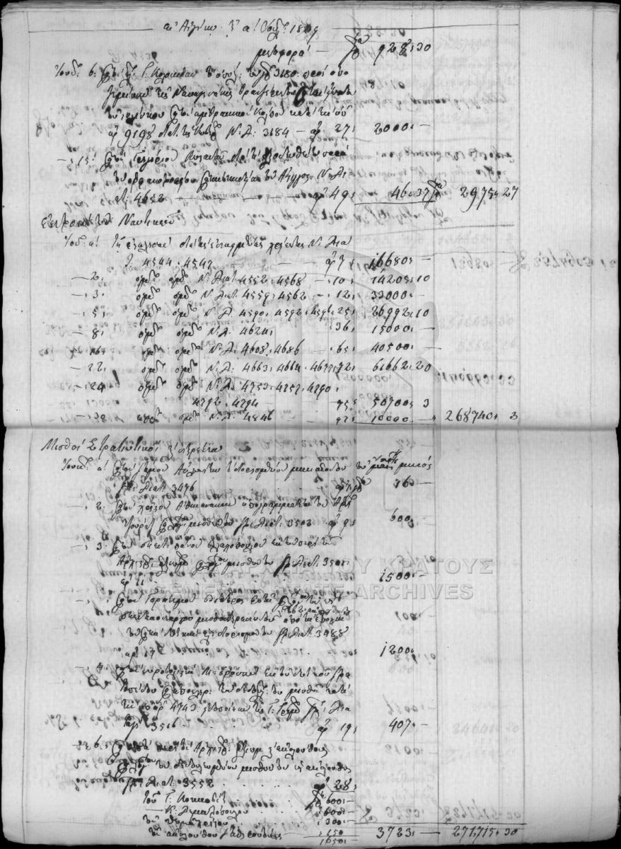 Περιέχει επιστολές, διάφορα έγγραφα, διατάγματα, λογαριασμούς, ονομαστικούς καταλόγους, αποδείξεις, ναυτολόγια και δηλοποιήσεις.