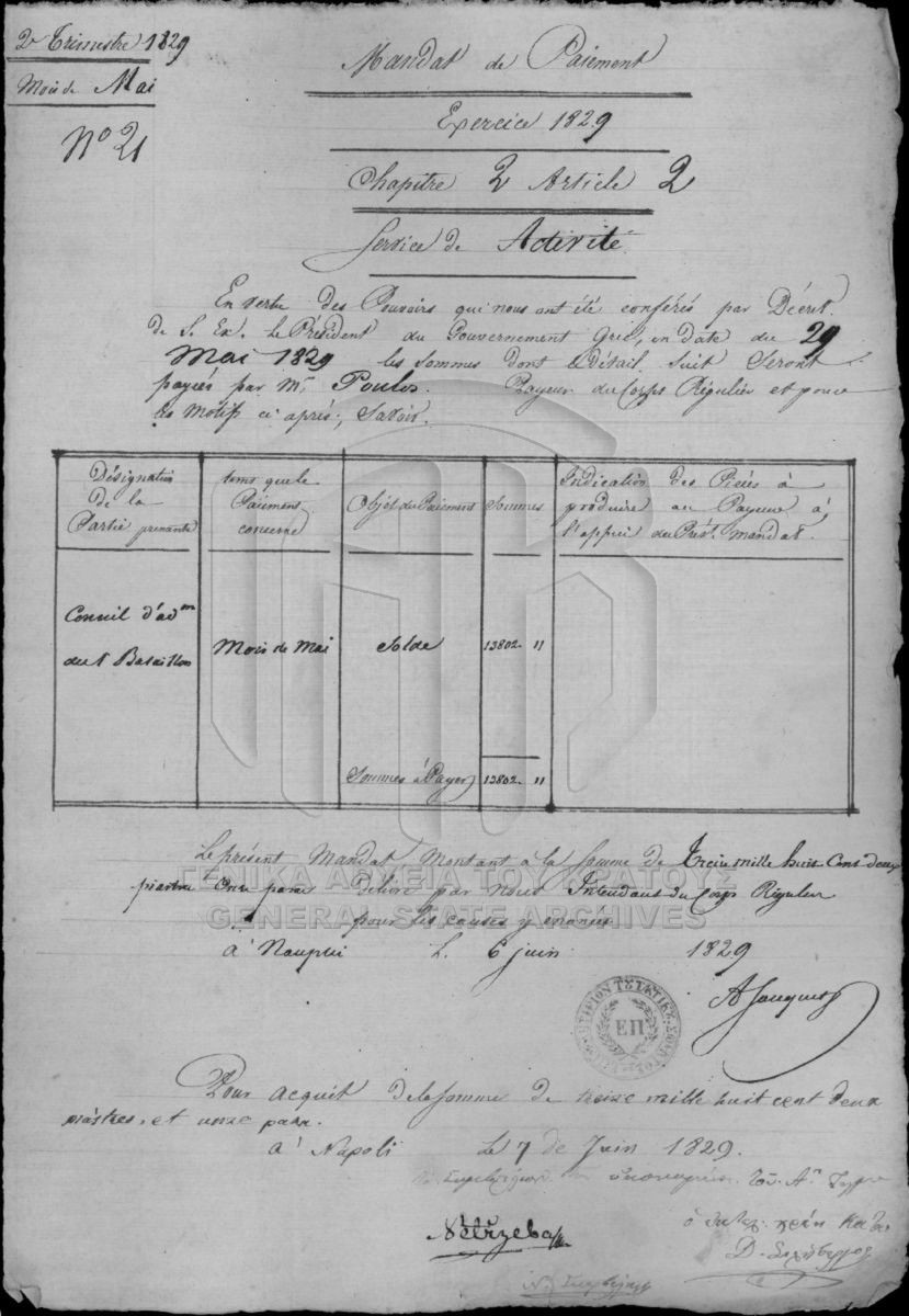 Αρχείο Γενικού Φροντιστηρίου (περιόδου Κυβερνήτη Ι. Καποδίστρια)  [1828 - 1829]