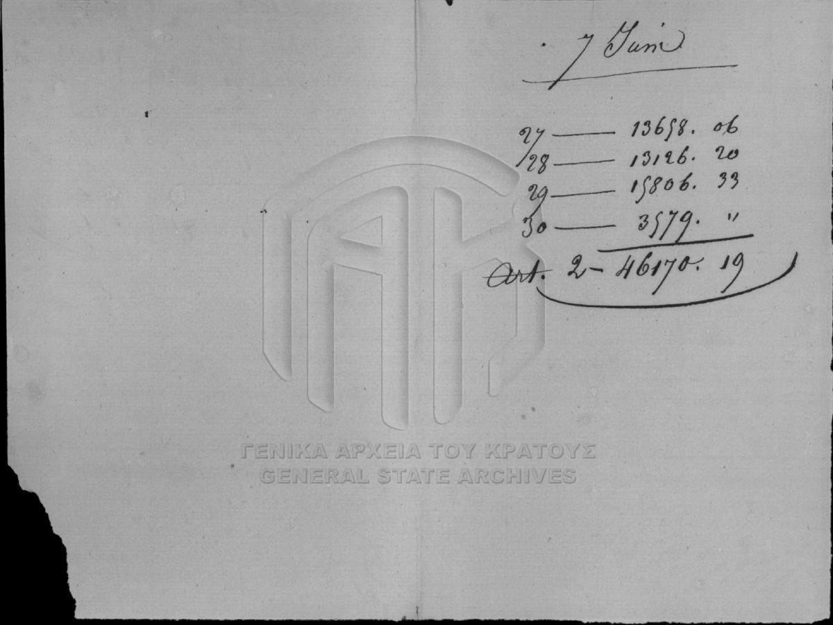 Περιέχει επιστολές, διάφορα έγγραφα, διατάγματα, λογαριασμούς, ονομαστικούς καταλόγους, αποδείξεις, ναυτολόγια και δηλοποιήσεις.