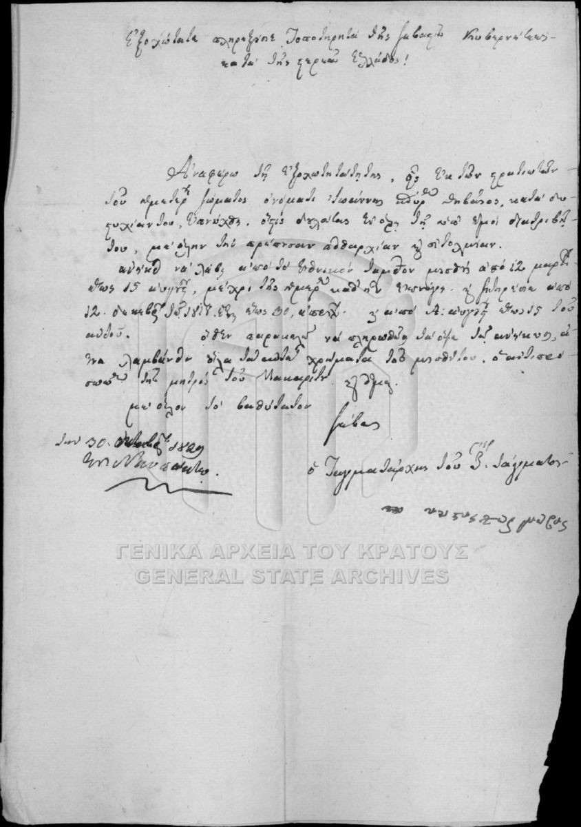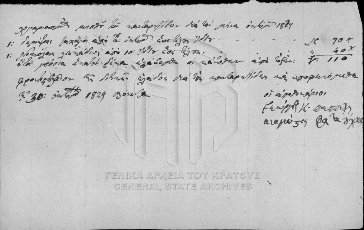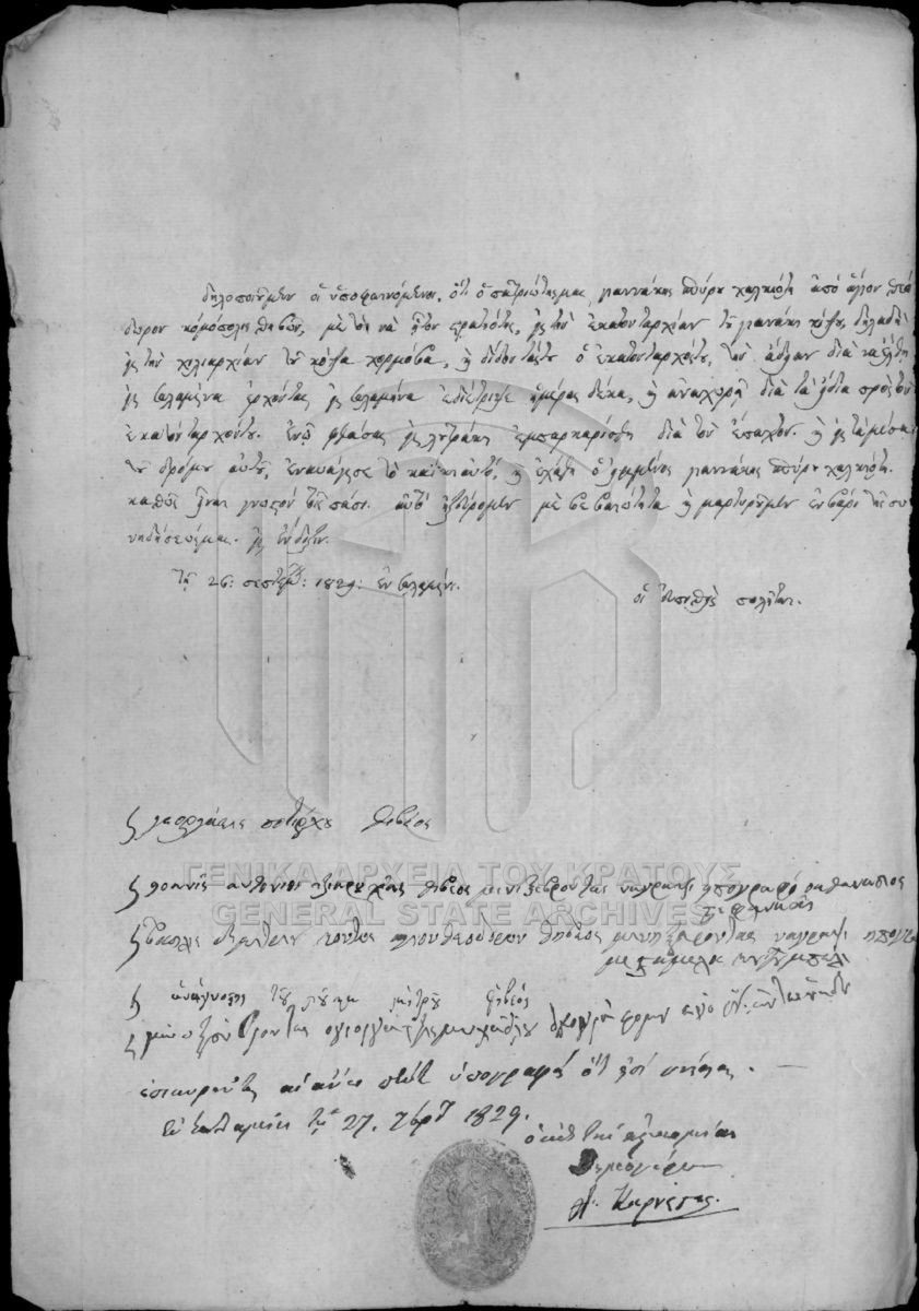 Αρχείο Γενικού Φροντιστηρίου (περιόδου Κυβερνήτη Ι. Καποδίστρια)  [1828 - 1829]