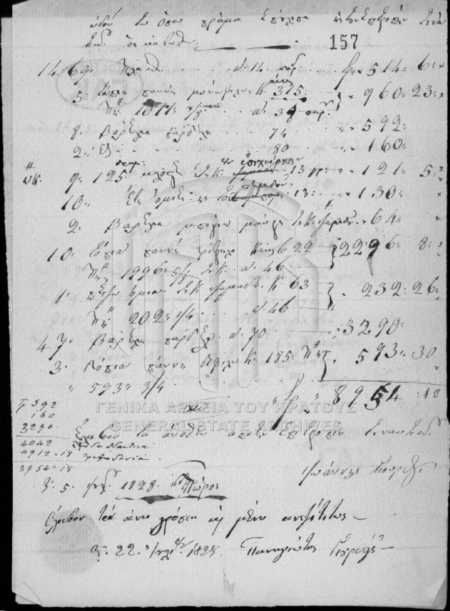 Περιέχει επιστολές, διάφορα έγγραφα, διατάγματα, λογαριασμούς, ονομαστικούς καταλόγους, αποδείξεις, ναυτολόγια και δηλοποιήσεις.