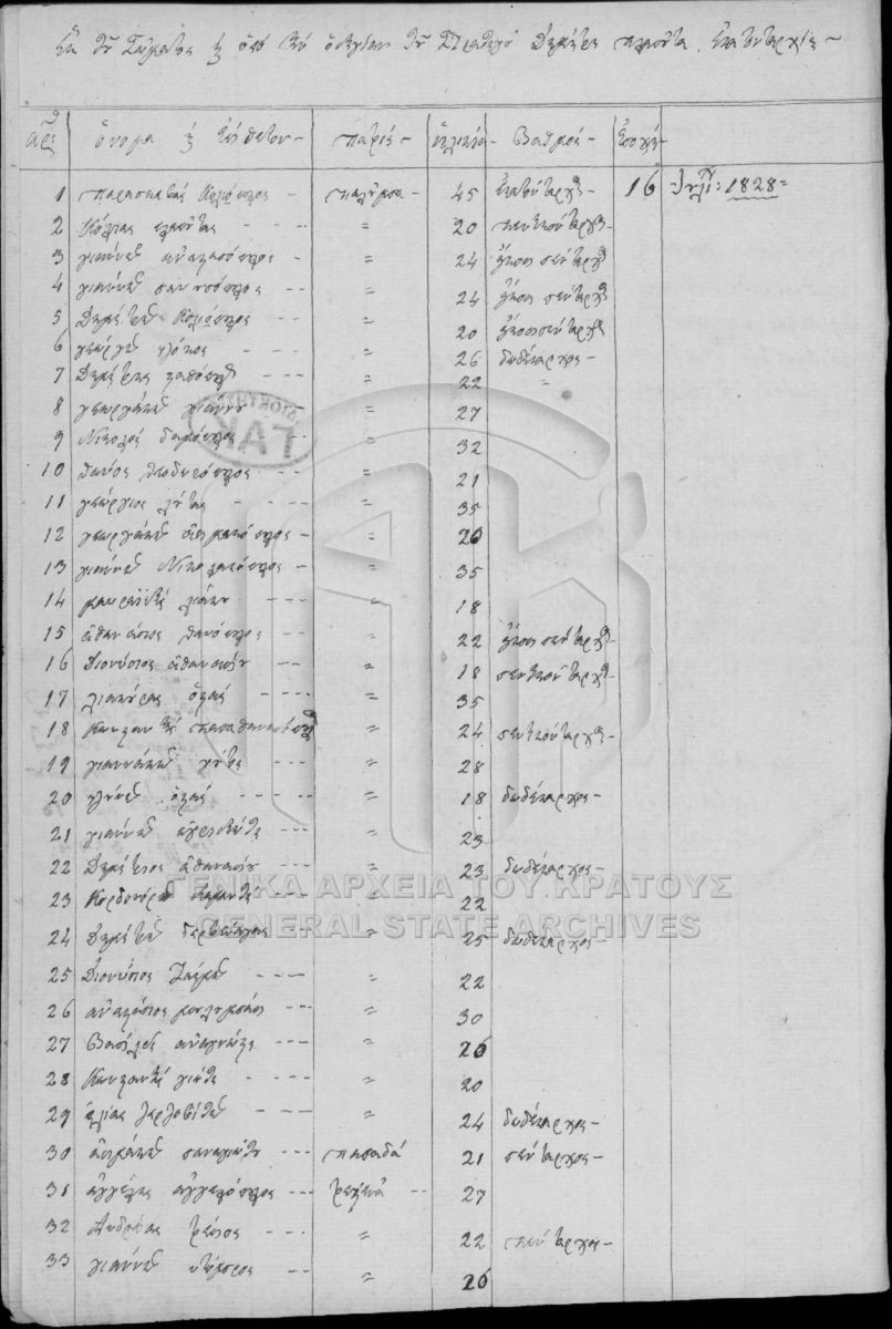 Αρχείο Γενικού Φροντιστηρίου (περιόδου Κυβερνήτη Ι. Καποδίστρια)  [1828 - 1829]