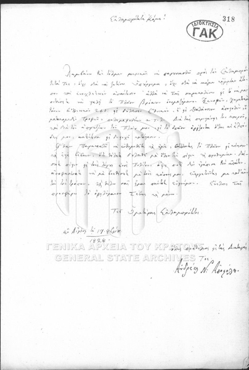 File #20a - I. KAPODISTRIAS GOVERNING PERIOD ARCHIVE  [1828]