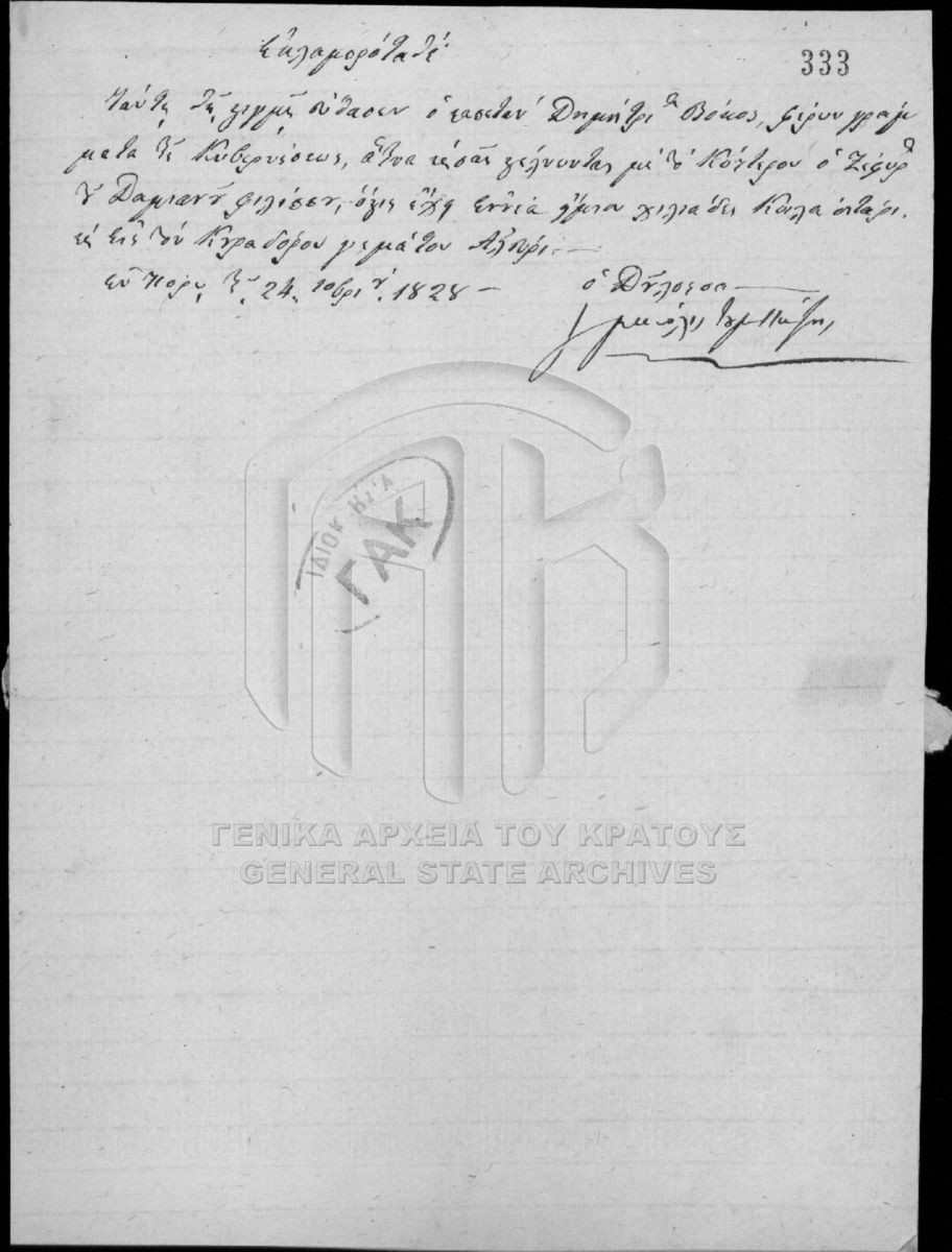 Αρχείο Γενικού Φροντιστηρίου (περιόδου Κυβερνήτη Ι. Καποδίστρια)  [1828 - 1829]