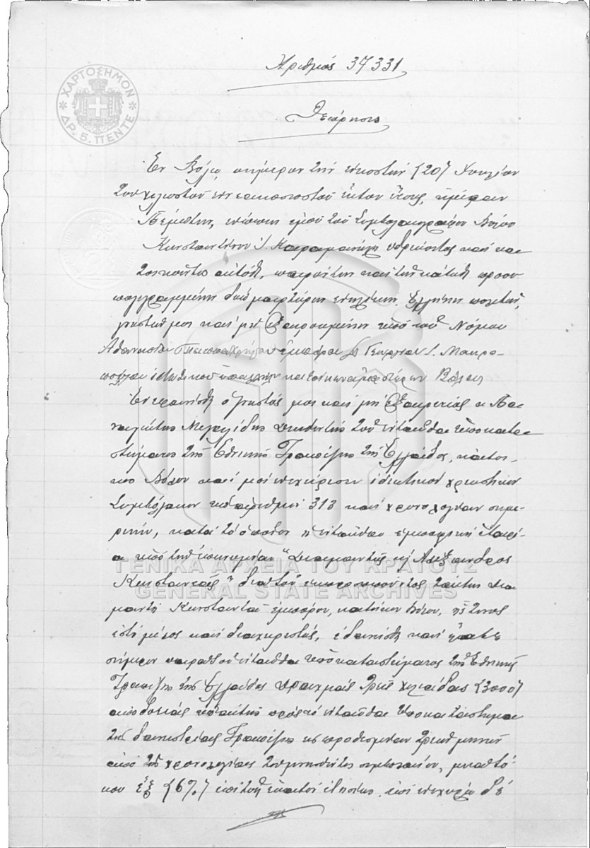 [Item] GRGSA-MAG_NOT002.01.F000075.IT037331 Item #37331 - KARAMANOLIS NOTARIAL ARCHIVE [20 Ιουλίου 1906] Notarial deed. Attestation. |